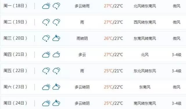 气温基本维持在21-27度,可能偶有降雨。但是上海天气多变,请大家也不要太担心,随身携带雨具即可。早晚温差大,请带好足够的衣物,及时增减。