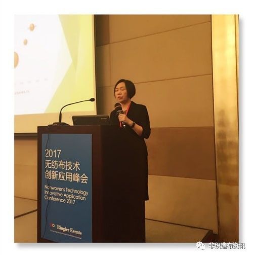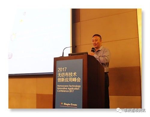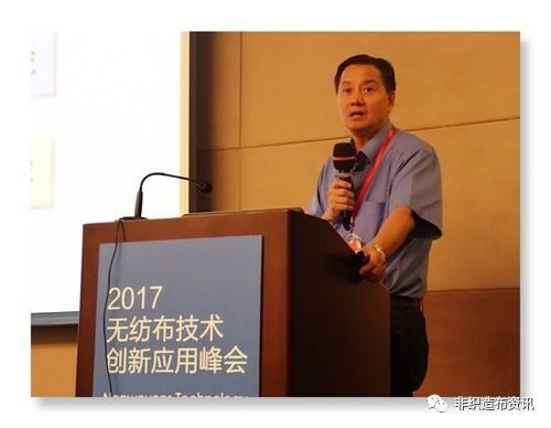 东华大学纺织学院非织造材料与工程系系主任靳向煜先生介绍了水刺非织造布技术创新和最新应用。