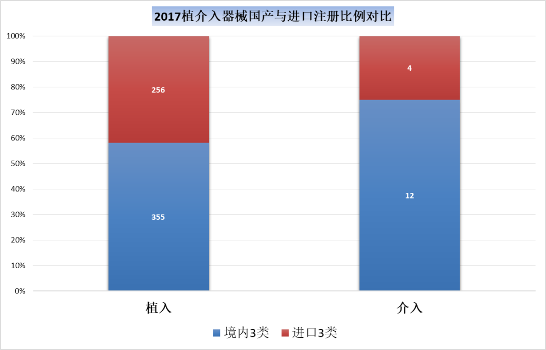 2016年,境内三类和进口植入材料和人工器官的注册数量比为360:509,而2017年这一比例升高到了355:257,进口器械的获批明显减少,从一个侧面也反映出国家从医疗器械审评审批的层面基于医疗器械国产化的支撑。
