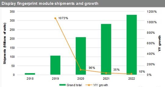 据全球关键信息、分析和解决方案领导者IHS Markit预计,智能手机品牌将增加屏下指纹传感器的使用,使手机导入全面屏显示的同时,也能在手机正面具有隐形的指纹识别功能。