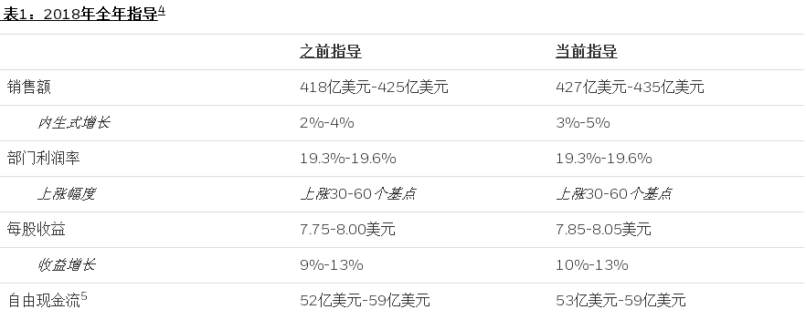 霍尼韦尔(纽约证券交易所代码: HON)近日公布了2018年第一季度的财务业绩,并上调了全年销售额、每股收益2和自由现金流3指导。