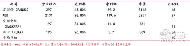 ▲2016年机器人四大家族财务数据及目前市值(单位:亿元)