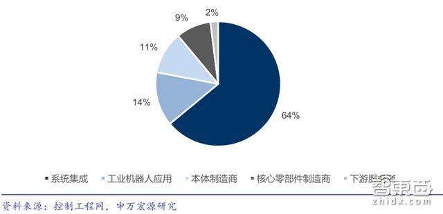 ▲机器人上游核心零部件的占整个产业链中价值的70%左右
