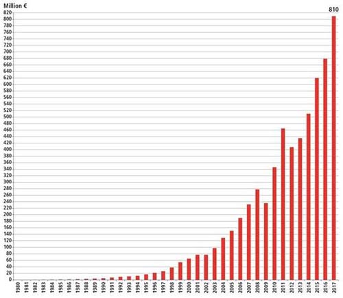 德国倍福 2017 财年全球销售额达到了 8.1 亿欧元,较上一年增长了 19%。新产品、更广泛的销售网络、更大生产能力以及倍福客户的稳定增长都为倍福能够取得如此骄人的成绩做出了重要贡献。