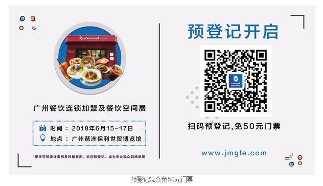 更多关于“2018广州餐饮连锁加盟及餐饮空间展”同期活动“国人餐饮空间美学趋势展”的详细介绍,欢迎关注官方微信的后续报道,提前预登记专业观众,免50元参观门票参与相关论坛活动。