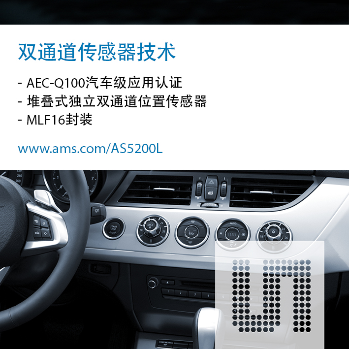 2018年6 月 20 日,全球领先的高性能传感器解决方案供应商艾迈斯半导体(ams AG,瑞士股票交易所股票代码:AMS)今日推出了 AS5200L。这款配备 I2C 接口的双通道旋转磁性位置传感器,是可在安全性至关重要的汽车应用中实现节省空间的新型设计。