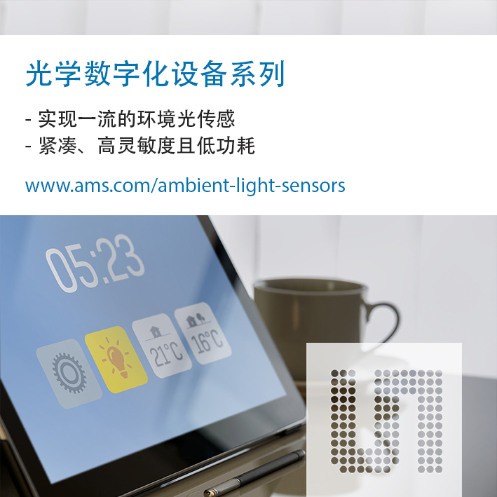 TSL2540、TSL2541和TSL2740现已实现量产。这三款设备的评估套件目前均已上市。索取样品或了解更多技术信息,请访问www.ams.com/ambient-light-sensors。
