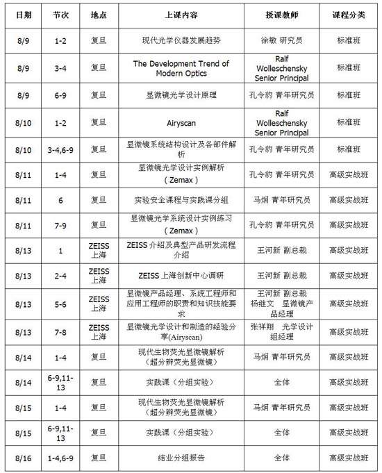 新技术发展和突破为科学研究提供了新的动力,其中光学系统作为一种非侵入非破坏性的方法,被应用用于各类科研和工业过程中,尤其是各类光学显微镜的发展,不但是科学家、研究人员和诺贝尔奖获得者神器,也为研发和生产的工程师添肢加翼。ZEISS公司在光学显微镜行业被誉为业界第一,在光学系统设计和产业上无疑是经验最丰富的。复旦大学光科学与工程系,在光学基础知识、多学科交叉融合的教研上有着深厚的积累。本课程拟结合两方面的优势,成为培养光学系统工程师的综合性强化课程。