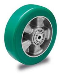 脚轮胎面采用厚实的绿色软质聚氨酯,具有良好的弹性、承载能力和抗撕裂特性,从而有效吸收冲击和振动,并且推动或牵引推车时更省力。