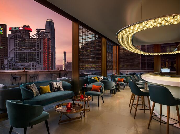 宾客从升降机到达楼顶之际,坐拥壮丽景观的时尚酒吧及露天雅座尽入眼帘。设有舒适座椅的户外露台空间占地420平方米,为绝佳拍照全景地点。酒吧供应由调酒师精心炮制的经典与创意鸡尾酒并配搭各式精致小食拼盘。