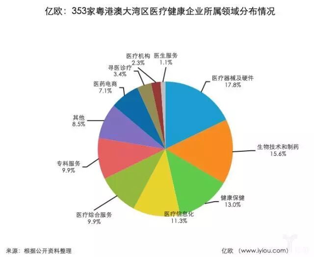 353家粤港澳大湾区医疗健康企业所属领域分布