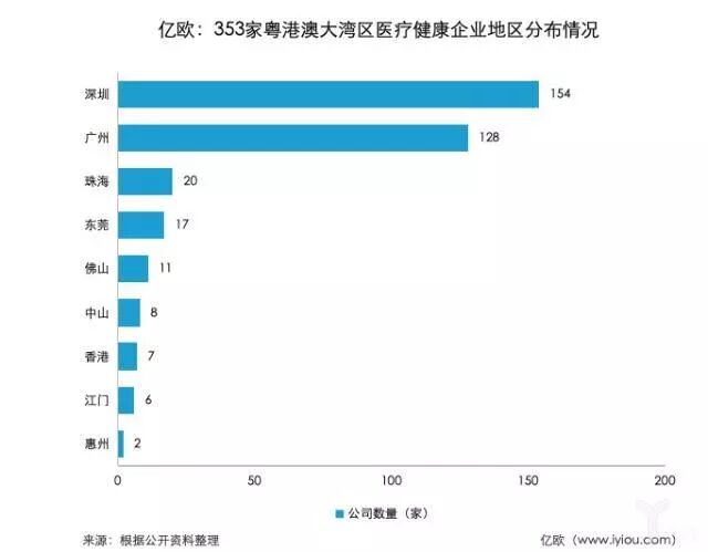 353家粤港澳大湾区医疗健康企业地区分布: