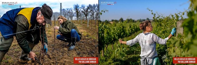 图2和图3.波尔多及优级波尔多产区酒农们正在照顾葡萄藤