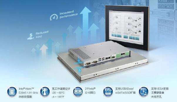新款承袭了上一代机种若干特色,包括紧凑无风扇设计、通用特质、全平面触控屏幕、前面板IP66防水防尘等级、宽温操作(-20~60°C/-4~140°F)…等,可适应各种工业应用环境严苛挑战,且新机使用Intel® Atom™ E3845四核处理器,运算性能较上一代机种大幅提升,性价比更高,且扩充更为便捷。