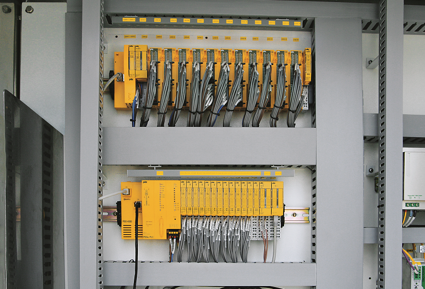 安全控制系统的升级工作:此次项目的改造难点也在安全控制系统的升级,皮尔磁公司通过最新控制技术的应用,完成对早期PSS3000的控制系统及其内部安全逻辑的完全替代。借助此次项目,新一代安全控制系统PSS4000产品也在此次改造的开卷落料线闪亮登场。PSS4000安全控制系统具有符合最新ISO13849和IEC61508规范的安全认证,保证了产品能够提供更高的安全可靠性参数,作为安全自动化控制工艺的核心,PSS4000安全控制系统承担着采集和监控现场安全传感器所提供的实时信号;通过预先设定好的安全逻辑进行有效的控制,从而在发现安全隐患或者发生安全事故的情况下有效的对自动化开卷落料生产线的制动环节发出指令,最终目的是保证操作人员能够在一个安全的环境下生产作业。