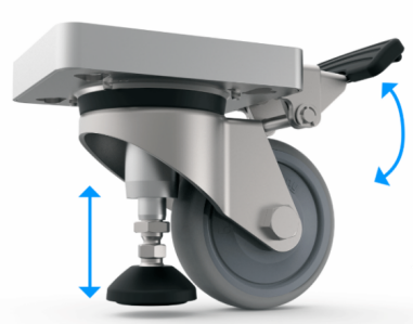 芙得机械配件(上海)有限公司(AMTS & AHTE 2019展位号:E1-B01)将展出的FATH升降脚是FATH拥有专利的创新产品。它极其巧妙地将调平脚与旋转脚轮组合在一起,为需要在工厂内频繁搬运机器的场合提供了完美的解决方案。在使用过程中,只需轻轻一踩即可将调平脚伸出支撑起机器,比用脚轮支撑更加安全平稳。其特殊设计的安装孔,使其能安装到不同的型材上。