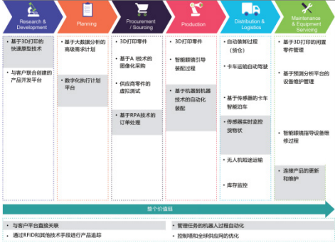 数字化技术能够帮助企业解决各种问题,甚至创造新的发展机会。正如文章前面提到的问题—“什么是供应链数字化的部署措施?”,有一系列的新技术影响着价值链的各个环节。并且对于这些技术中的每一项都能举出多个应用实例。