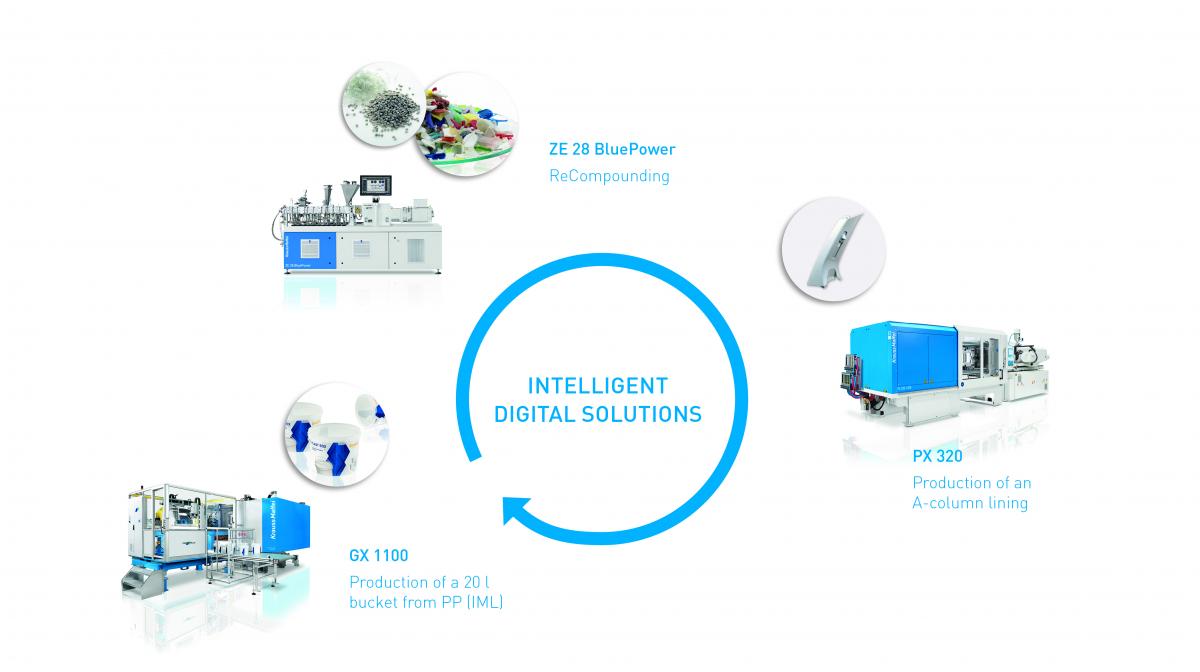 塑料桶通过循环经济成为 A 柱——2019 年 K 展上,克劳斯玛菲展示了一种封闭材料和生产回路流程,包括挤出和注塑机