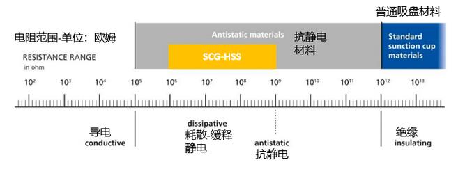 与SCG悬浮吸盘结合一体的SCG-HSS保留了SCG大流量稳定搬运的特点,同时,ESD缓释静电材质能保证电路板或电子元器件在搬运过程中,在有效时间内彻底释放掉静电,保障工件运输安全。