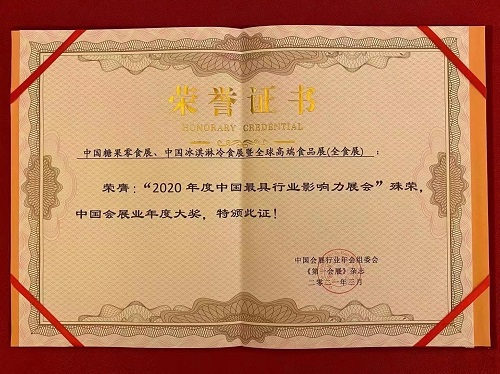由北京龙品锡展览有限公司主办的“中国糖果零食展、中国冰淇淋冷食展暨全球高端食品展(全食展)”再次荣获“2020年度中国最具影响力行业展会”大奖。著名营销专家、《营销十年》畅销书作者、龙品锡展览总经理王海宁获得“2020年度中国会展业杰出人物”荣誉。论坛现场,王海宁在现场发表了《不要浪费任何一场危机》的主题演讲,他表示“非常感谢组委会和展会行业的认可,2020年对全球、对行业都是非常特殊的一年。在疫情的严重冲击下,我们作为会展人,承受的压力更大,此刻,需要我们多些思考,开辟新思路。不浪费任何一场危机,在危机中求发展。 很开心全食展顶住了压力,提升展会的硬件设施和软件服务,把展会和数字化相融合,并取得了还不错的成绩,作为主办方我们将再接再厉。”此外,他还表示,今后,全食展平台化,以共赢为前提,展开各种合作。并向与会嘉宾分享了老板三件事,定战略、用人、分钱。