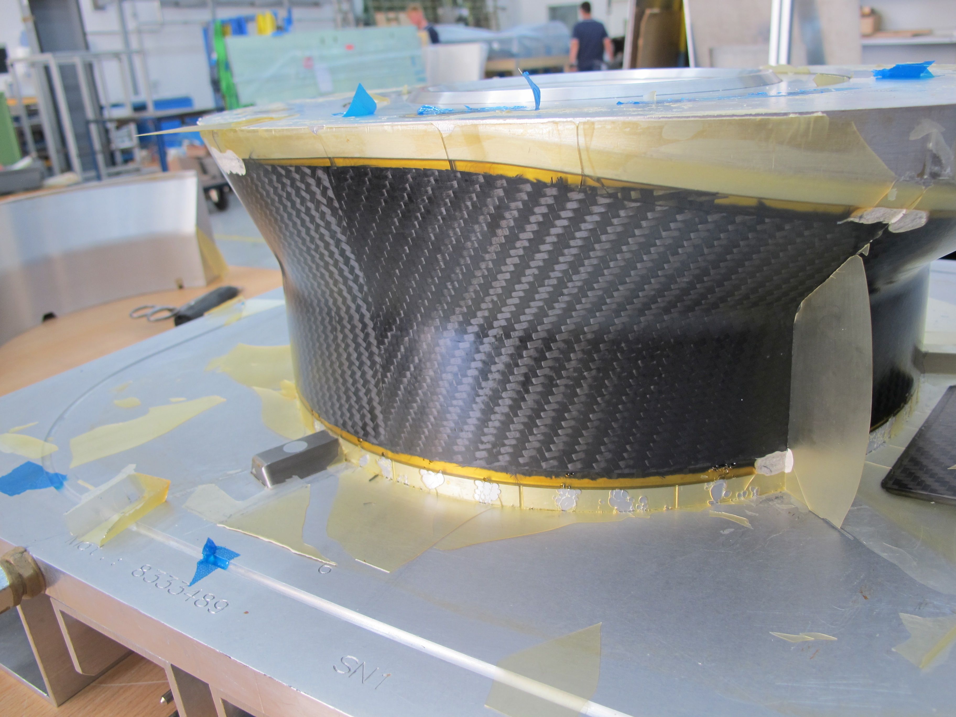 因为环形框架几何形状的极端不可展开性,工程人员在预成型件中额外设计了一些切口和凹口,以避免模塑成型时产生褶皱。随后,工程人员测试了内法兰的抗压强度,通过静态和动态的拉伸测试验证了CFRP环形框架的展开能力,以及CFRP环形框架与无增强聚合物扣板之间的界面。测试结果表明,新的CFRP环形框架设计非常坚固,可以安全地处理预期负载。