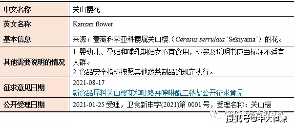 2021年CFSA发布征求意见的新食品原料