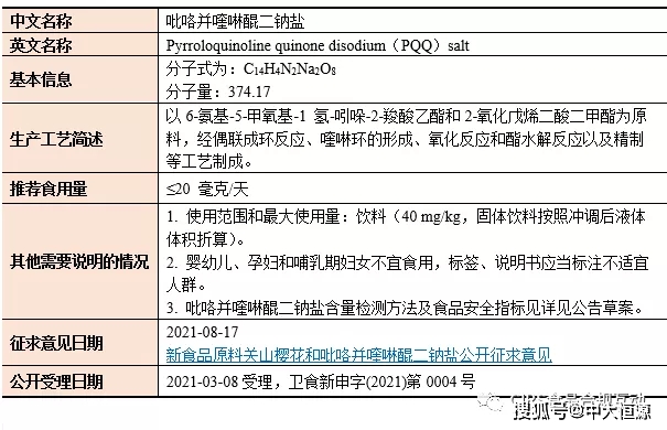 (3)吡咯并喹啉醌二钠盐(公告草案)
