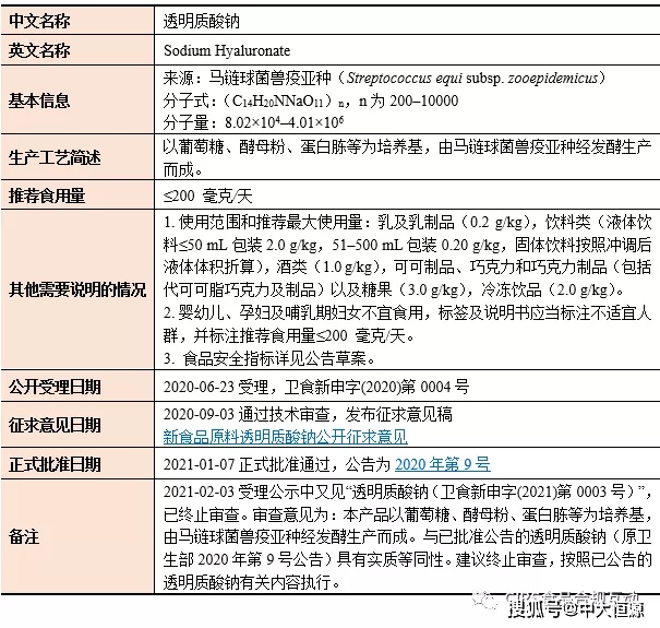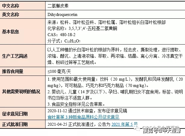 2021年批准通过的新食品原料共计8个,各产品的详细批准信息如下: