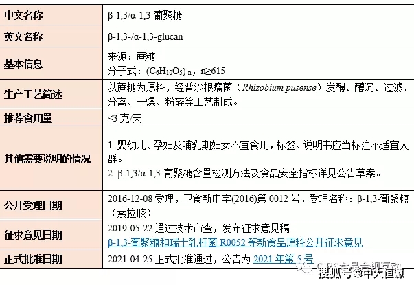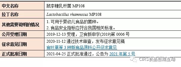 2021年新食品原料的受理名单