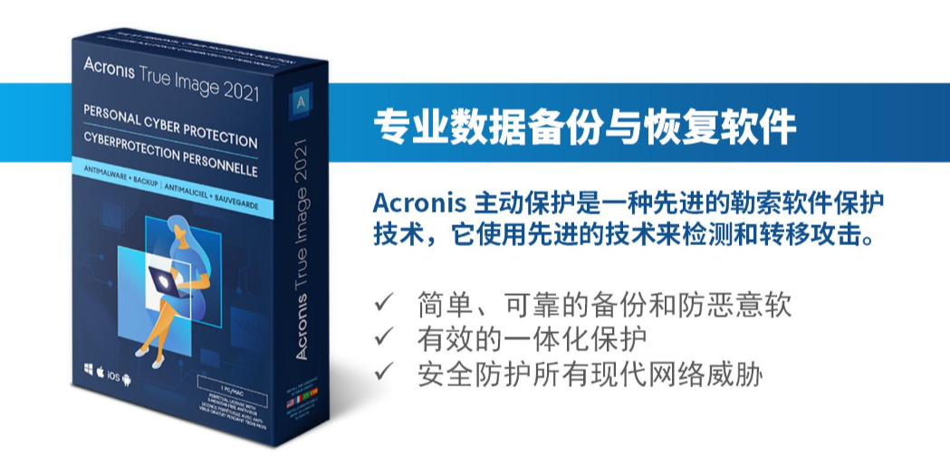 在数字化时代下,数据安全显得极其重要,Acronis 网络安全保护解决方案简便、高效且可靠。研华作为Acronis数据备份软件的全球嵌入式渠道代理商,一直致力于提供包括物理、虚拟、云服务器备份软件和系统部署等解决方案,为各嵌入式领域服务,保证业务的安全运行。我们提供面向个人、企业、服务提供商的数据安全产品:Acronis True Image 、Acronis True Image OEM Version 、Acronis Cyber Backup,为您的数据安全保驾护航。