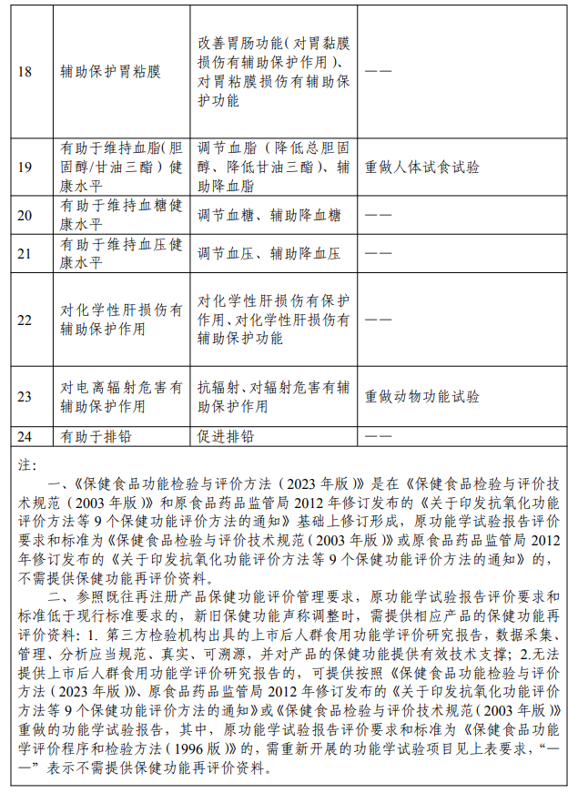 据了解,纳入《目录》的24种保健功能声称,均为历史曾批准、社会共识程度高、国际上有类似功能声称的保健功能声称。《目录》配套文件主要包括《保健食品功能检验与评价技术指导原则》《保健食品功能检验与评价方法》以及《保健食品人群试食试验伦理审查工作指导原则》等。