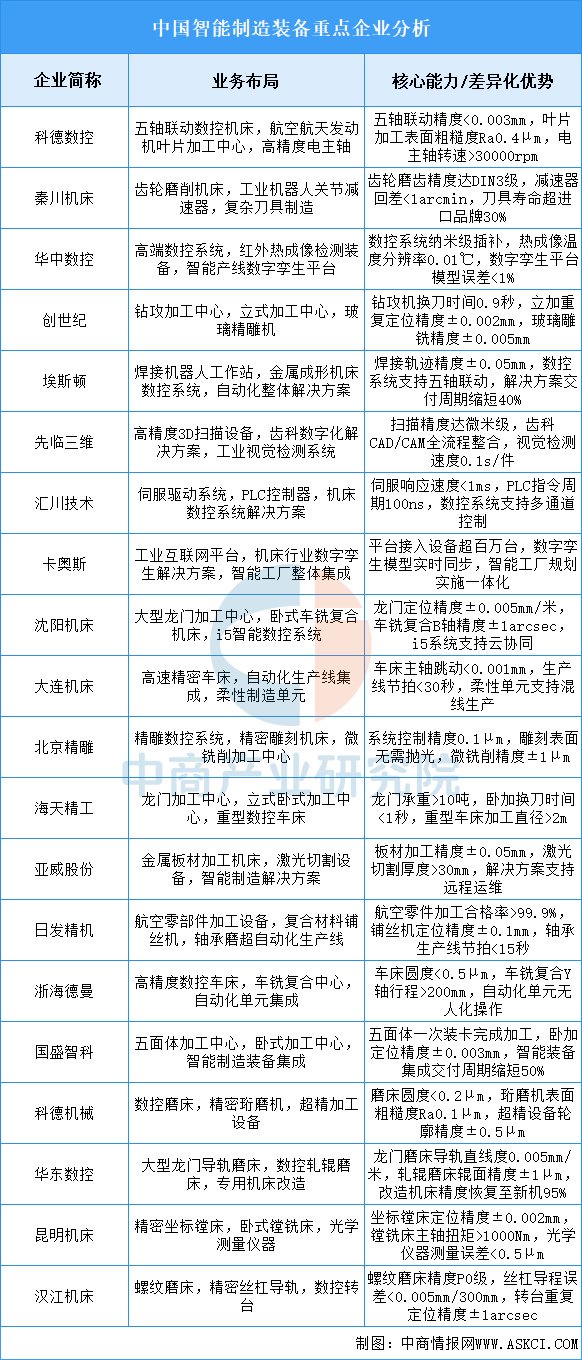 智能制造装备行业正向高精度、复合化与智能化加速升级,技术竞争聚焦五轴联动、纳米级控制及数字孪生系统突破,产业链自主可控需求推动核心部件国产化替代。科德数控以五轴联动技术主导航空航天领域;秦川机床借齿轮加工装备优势巩固产业地位;华中数控依托数控系统突破构建技术生态。