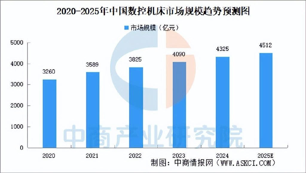 数控机床,即数字控制机床,是一种配备有程序控制系统的自动化机床。近年来,数控机床市场呈现出快速发展的态势,行业规模持续扩大,整体运行状况稳中向好。中商产业研究院发布的《2025-2030年中国数控机床行业调查及发展前景分析报告》显示,2024年中国数控机床市场规模达到约4325亿元。中商产业研究院分析师预测,2025年行业市场规模将超4500亿元。