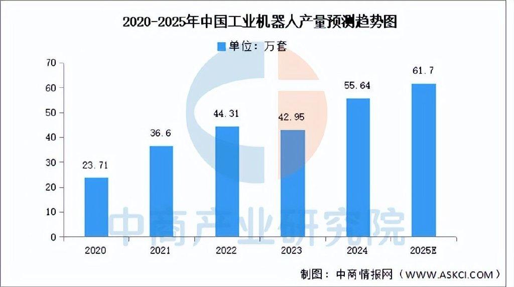 近年来,我国工业机器人产量总体呈现增长趋势。中商产业研究院发布的《2025-2030年中国工业机器人行业深度调查及投融资战略研究报告》显示,2024年全国工业机器人产量为55.64万套,同比增长14.2%。中商产业研究院分析师预测,2025年产量将超过60万套。