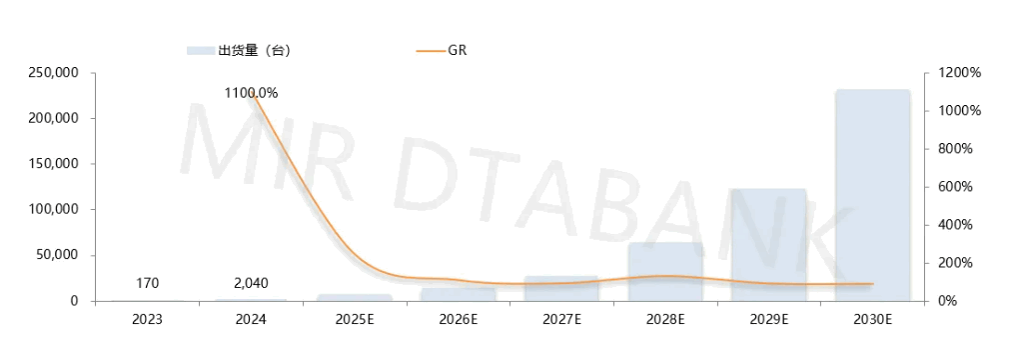 2023-2030年中国人形机器人领域六维力传感器市场规模推移(台)