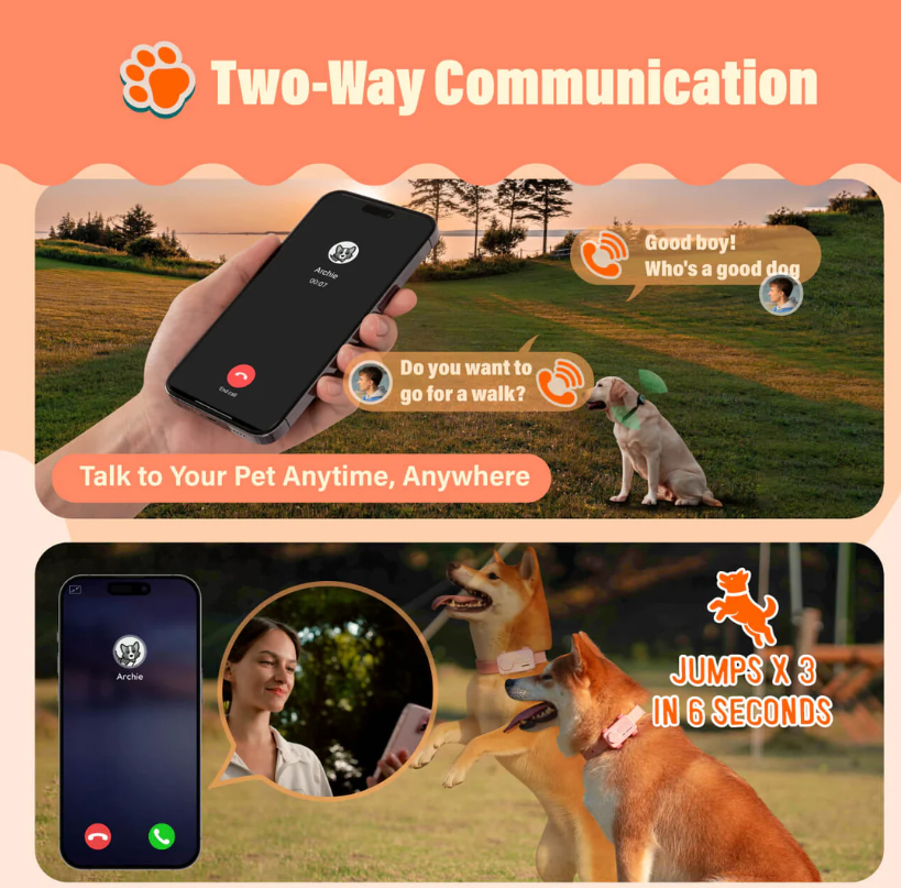 在定位与监控设备主导的宠物科技市场中,PetPhone 脱颖而出,成为全球首款能随时随地与宠物进行实时双向通话的创新智能设备。与单纯专注于户外追踪或静态健康监测的产品不同,PetPhone 突破了场景限制,即使在散步、旅行、外出等高移动性场景下,也能实现稳定定位和即时双向通话。