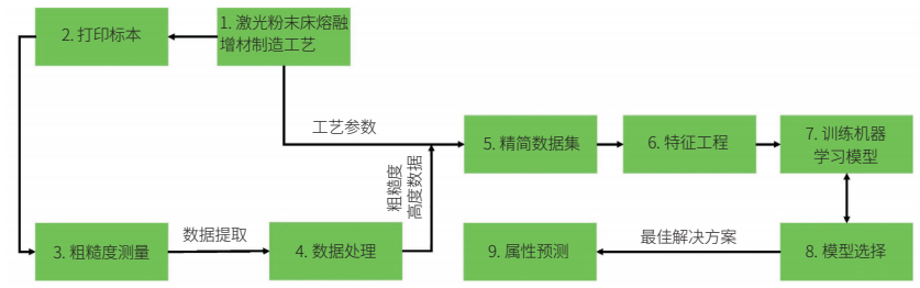 图12:激光粉末床熔融增材制造中预测表面粗糙度的机器学习框架示意图