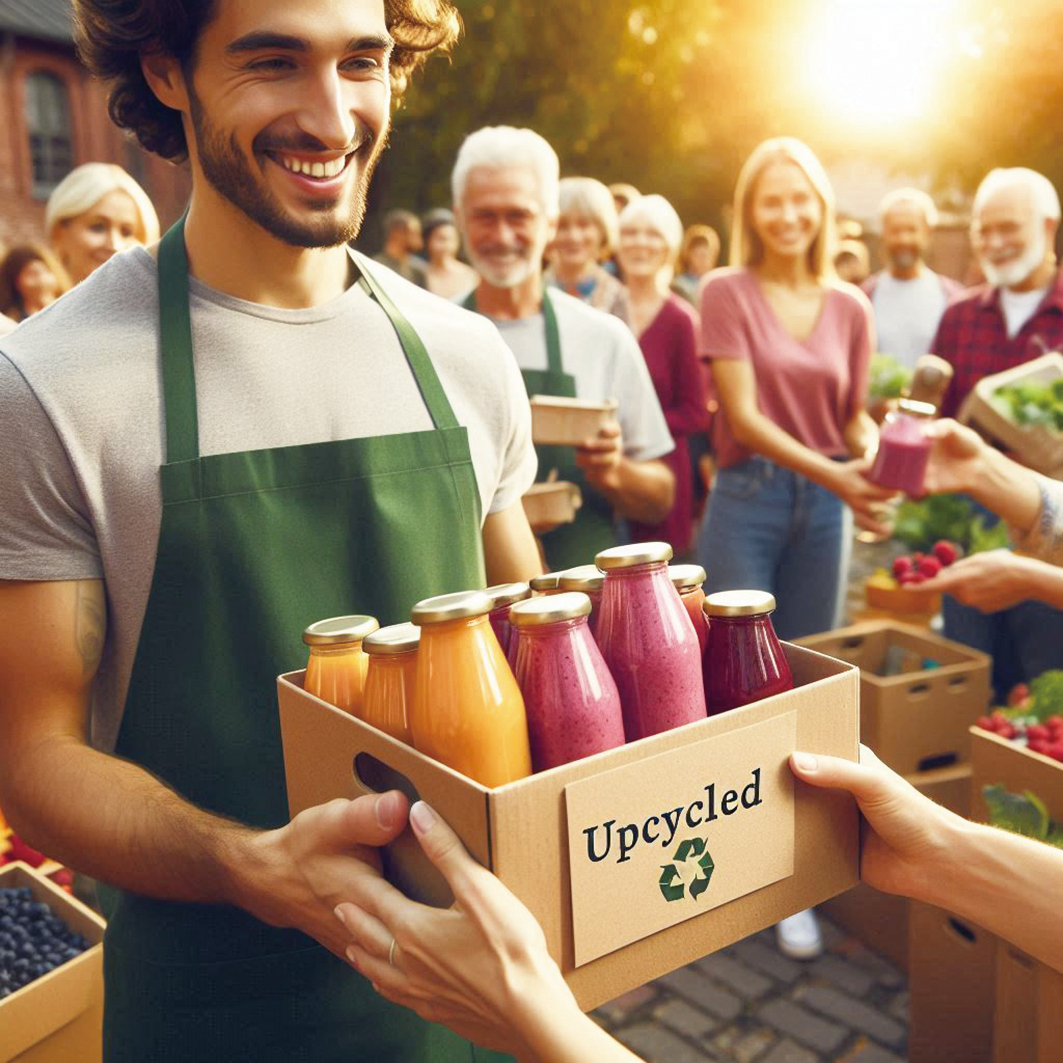 志愿者分发由“升级再造”食材制作的食品,直观展现这一概念在社区中的落地实践。