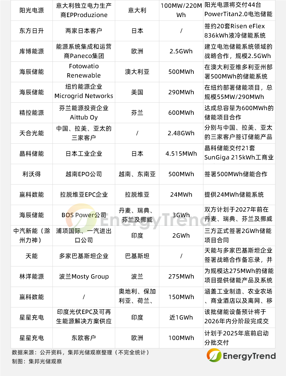 9月,超1GWh的海外储能大单达11笔,覆盖欧美、非洲、拉美等多市场,进一步展现了中企全球化布局。