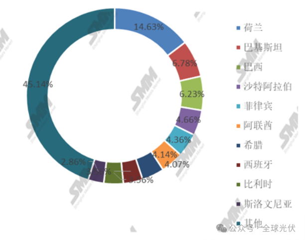 特别是对非洲出口量同比增长47.5%,对大洋洲出口量同比增长23.7%。数据显示,2025年一季度,中国共出口约61.9GW的光伏组件,而8月单月出口至荷兰的光伏组件就达到3.99GW,荷兰继续稳居中国光伏组件出口第一大目的国。