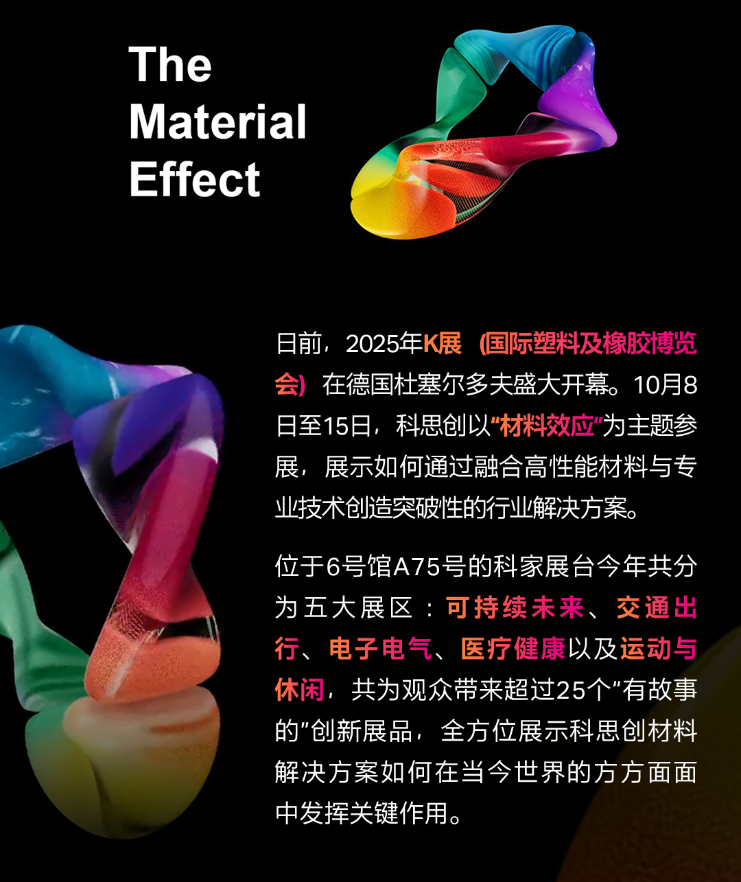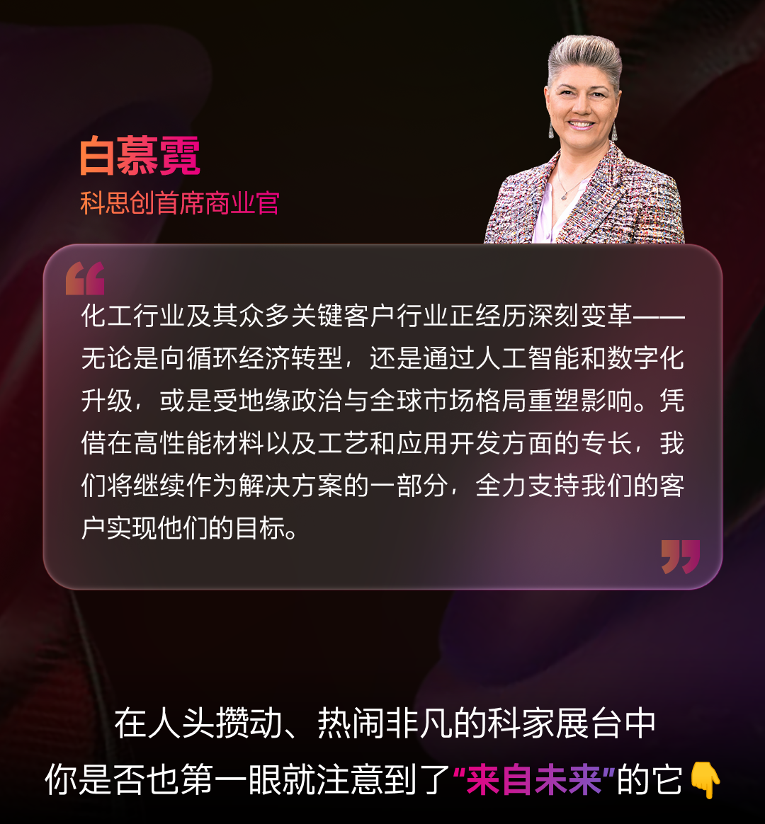 此次,科思创以“材料效应”为主题参展,展示如何通过融合高性能材料与专业技术创造突破性的行业解决方案。