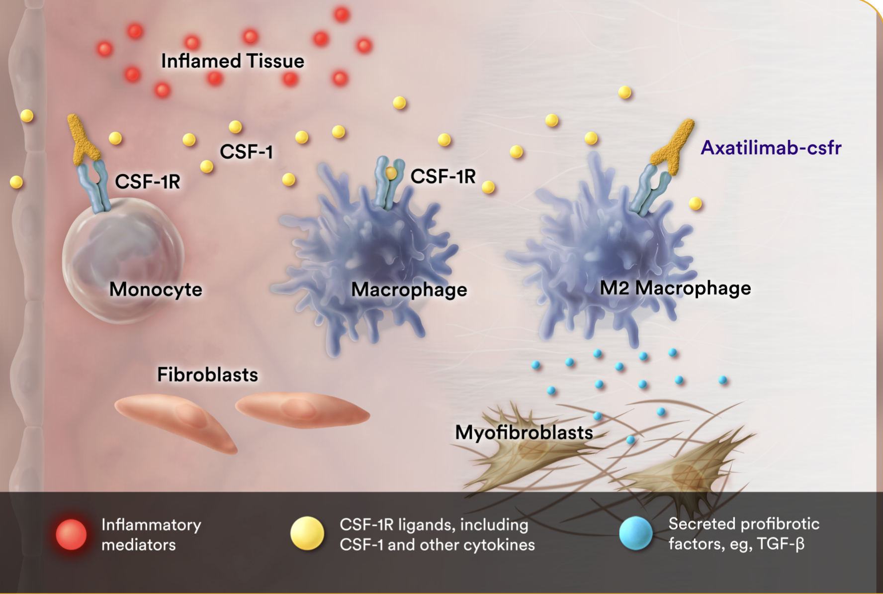 Incyte 与 Syndax 合作开发 axatilimab,这是一种靶向集落刺激因子-1 受体(CSF-1R)的首创抗体,目前正在 IPF 患者中进行 II 期试验评估。