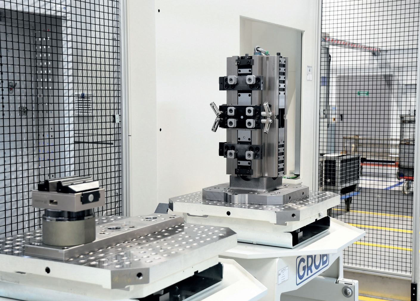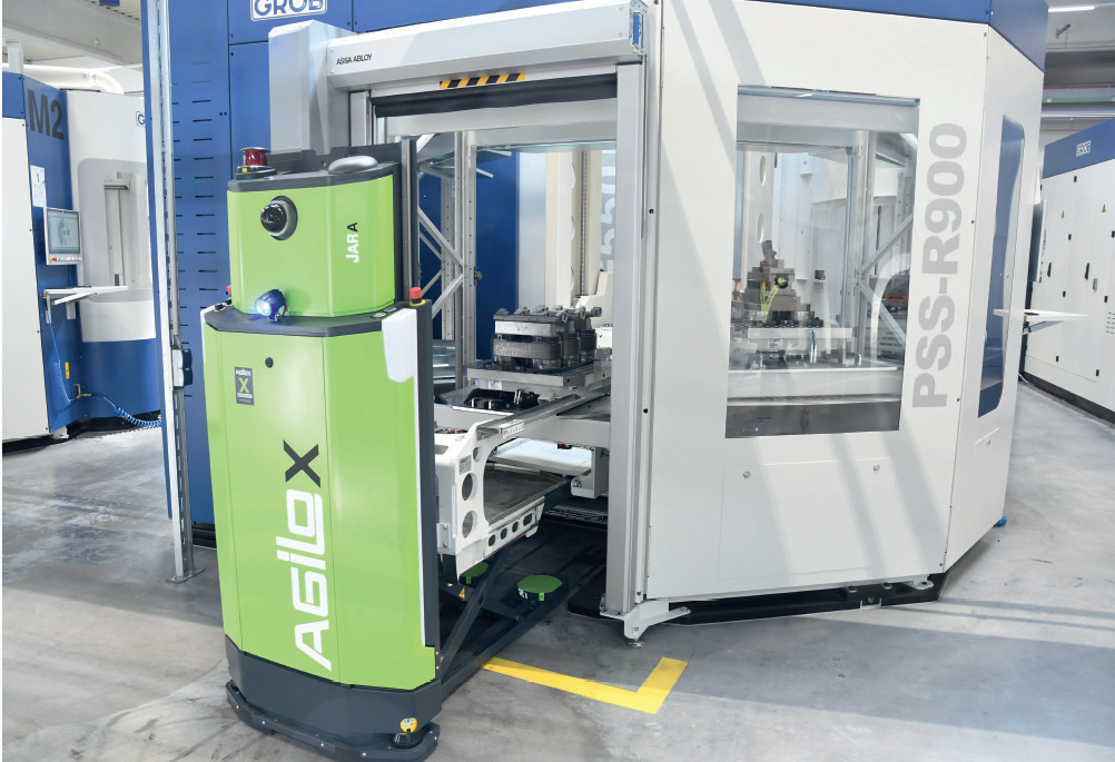 使用Agilox将工件装入格劳博的PSS-R900圆形托盘存储器,部件通过S2固定夹具进行多重夹紧