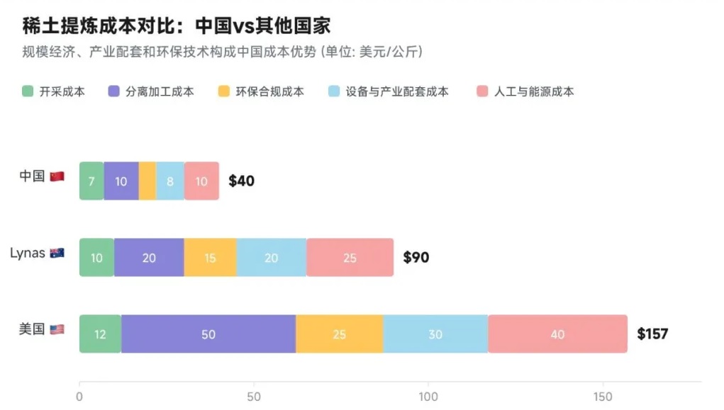 全球稀土产能与提炼成本对比
