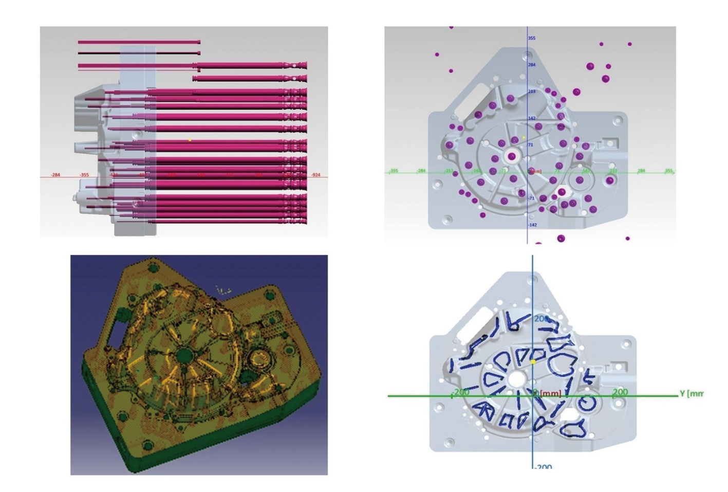 在丰田变速箱壳体项目中,团队采用了混合生产方法:首先常规制造带有垂直冷却通道的预成型件,然后在其上增材制造冷却通道。这一过程要求机床高度精确校准,以保证两部分的准确对齐和可靠结合。完成后,模具进行应力消除退火,其功能面则采用传统铣削加工。由于增材制造基体尺寸精度高,仅需极少量后处理加工,无需额外材料投入。