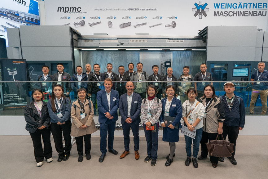 展会第三天下午,由中国机床工具工业协会(CMTBA)组织的中国企业家代表团一行30余人莅临魏因加特纳展台,与魏因加特纳全球销售总监Wolfgang Kumpfhuber先生与亚太区市场总监李语林女士进行深入交流。双方就高端装备技术合作、数字化转型路径及智能制造实践等议题展开讨论,为后续合作奠定坚实基础。展会期间,我们还接待了国机集团中机国际相关领导、部分浙江温岭企业代表团、隐形冠军德国研学团。在与各方的深度交流中,我们共同激荡思想、探索机遇,将一次次的会谈,升华为未来在技术、市场与战略层面协同共进的起点,真正实现了生态赋能与价值共创。