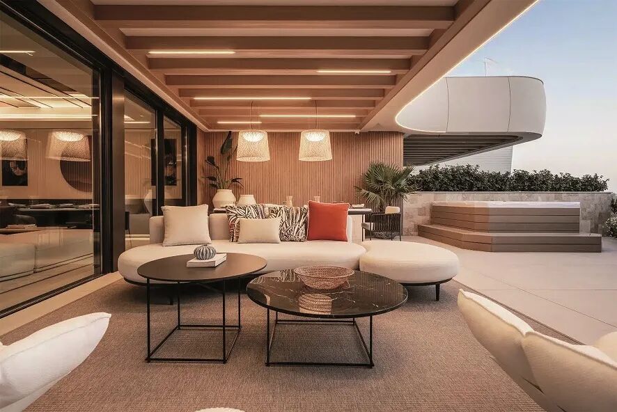 马尔贝拉Dunique豪华住宅项目充分展示了该技术的成熟应用价值。在这座位于西班牙阳光海岸的顶级住宅区内,建筑面临着高强度日照、高盐分海风的双重考验。通过与合作方Miaz y Diaz建筑事务所、Alu Stock S.A.的紧密协作,项目中的遮阳系统、艺术栏杆和建筑外立面均采用了定制化的木纹铝材装饰。