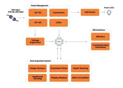 气体传感器、化学传感器等环境传感器,用于在需要保持警惕的环境中监控特定的有毒或易燃气体,常常集成在安全系统中。例如,NCV76124雨量和光线传感器最初为汽车应用设计,可通过光电二极管发射并测量反射光,进而识别环境中的颗粒物。再如,用于连续血糖监测 (CGM) 的 CEM102 电化学传感器模拟前端与 RSL15 蓝牙 5.2 微控制器配合使用时,能在极低的系统功耗下实现对化学电流微小变化的测量。