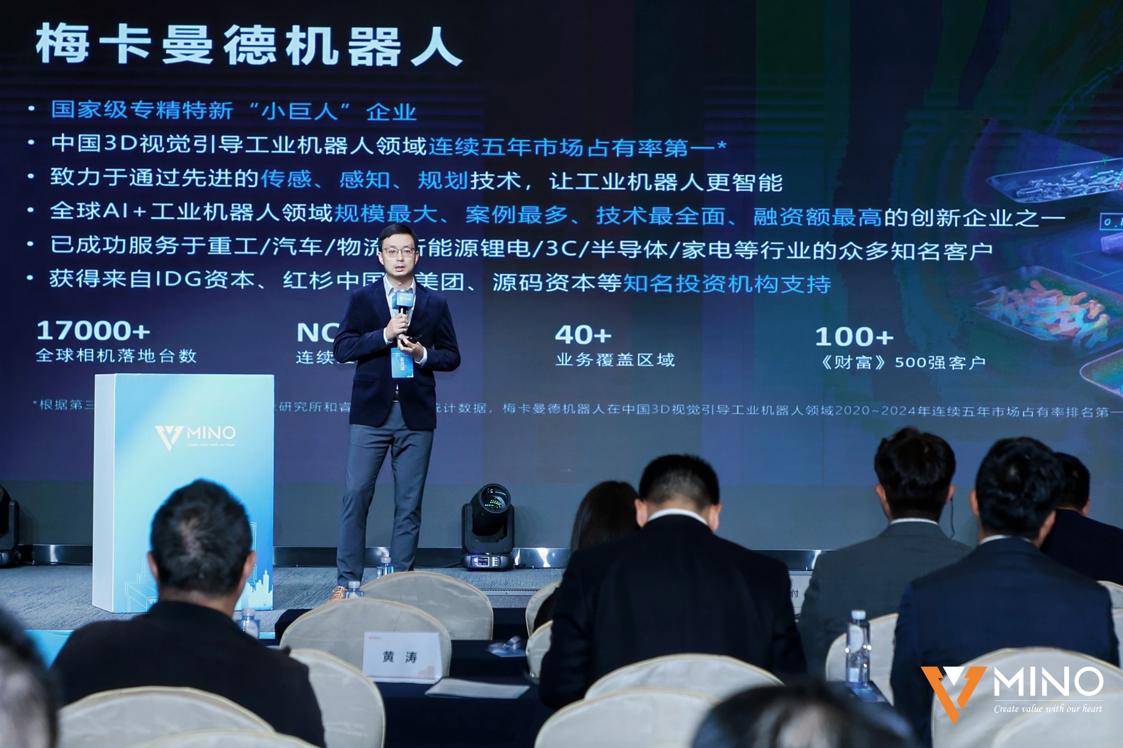梅卡曼德联合创始人兼业务副总裁付翱在论坛现场发表题为“通用机器人“眼脑手”,赋能汽车行业智能制造”的演讲