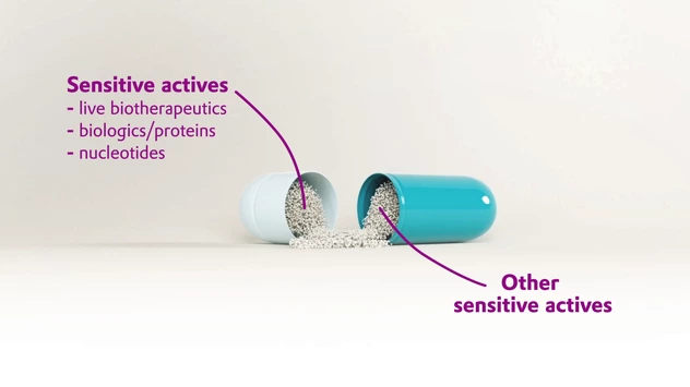 EUDRACAP colon 的开发旨在满足医药市场的关键需求:将敏感活性成分 (如活体生物治疗产品、RNA 和生物制剂) 安全有效地递送到回盲结肠区域。通过消除复杂的配方步骤,这些功能胶囊简化了口服药物开发,帮助客户加速临床时间表,更快地将创新疗法推向市场。